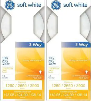 (2 bulbs) GE 41459 PS25D 3 Way Mogul Base Bulbs 100/200/300 Watt PS25 Soft White