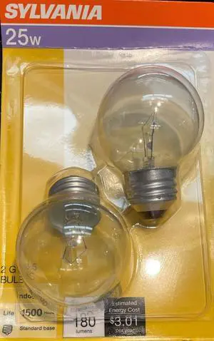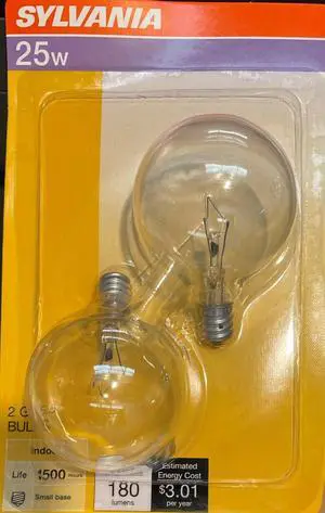 (2 pack) Sylvania G16.5 Incandescent Globe Light 25 watt Candelabra base