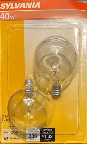 (2 pack) Sylvania G16.5 Incandescent Globe Light 40 watt Candelabra base