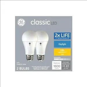 GE classic LED 100 watt equivalent A19 Daylight Dimmable LED (2 bulbs)