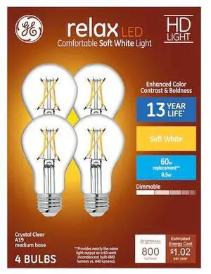 GE 51531 relax LED A19 Crystal Clear 60 watt equivalent Dimmable LED light bulb