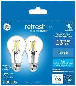 GE refresh LED 60 watt equivalent A19 Energetic Daylight Dimmable Light Bulb (2 pack)