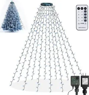 Christmas Tree Lights, 448 LED Waterfall Tree Topper Lights with Remote & 8 Lighting Modes, 8.2FT X 16 Lines Christmas Lights for Indoor Outdoor Yard Party Xmas Decoration (White)