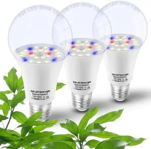 Grow Light Bulbs, A19 Full Spectrum Light Bulb, 9W Plant Grow Lights Bulbs (100W Equivalent), E26 Base, for Indoor Plants, Herbs, Flowers, Vegetables, 3 Pack