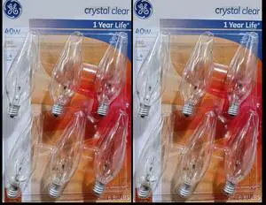 (12 bulbs) GE Incandescent Candelabra 40 watt Decorative Lightbulb, crystal clear, 280 lumens, cozy, relaxing light