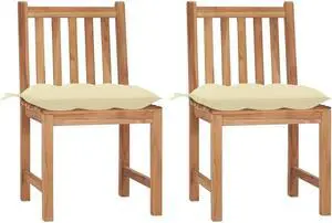 vidaXL 2x Solid Teak Wood Patio Chairs with Cushions Garden Lounge Seating