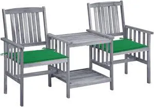 vidaXL Patio Chairs 2 Pcs Outdoor Chair with Cushions Gray Solid Wood Acacia