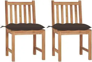 vidaXL 2x Solid Teak Wood Patio Chairs with Cushions Lounge Seating Garden