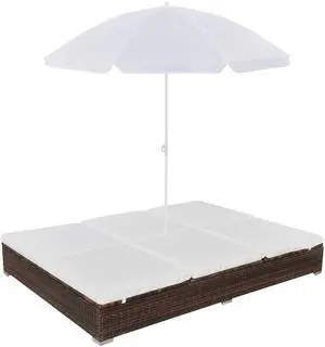 vidaXL Patio Lounge Bed Sun Lounger Chair with Umbrella Poly Rattan Brown