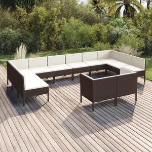 vidaXL Patio Lounge Set Outdoor Sectional Sofa Set 12 Piece Poly Rattan Brown