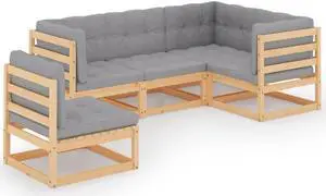 vidaXL Patio Furniture Set 5 Piece Sofa Set with Cushions Solid Wood Pine
