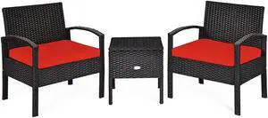 SlickBlue 3 Pieces Patio Rattan Furniture Set with Removable Cushion