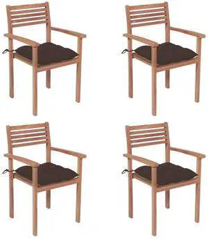 vidaXL 4x Solid Teak Wood Patio Chairs with Taupe Cushions Lounge Seating