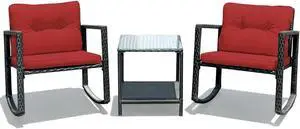 SlickBlue 3 Pcs Cushioned Patio Rattan Set with Rocking Chair and Table