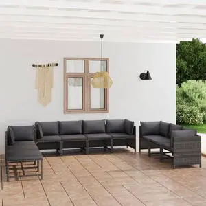 vidaXL Garden Lounge Set Patio Sectional Sofa Couch 8 Piece Poly Rattan Gray