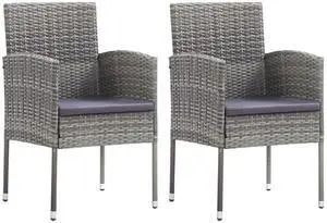 vidaXL Patio Chairs 2 Pcs Dining Chair with Cushions Poly Rattan Light Gray