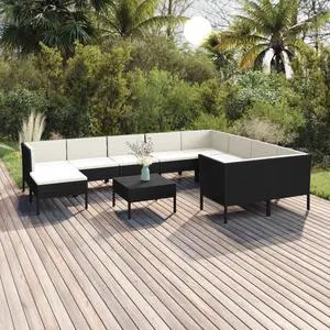 vidaXL Patio Lounge Set 11 Piece with Cushions Poly Rattan Black Garden Sofa