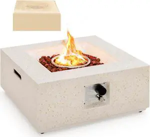 SlickBlue 34 Inch Square Concrete Propane Fire Pit Table with Lava Rocks and Cover 50 000 BTU-Gray