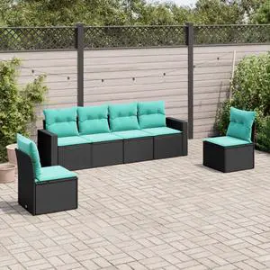 vidaXL Garden Sofa Set Black PE Rattan 5 Piece Set Adjustable Feet