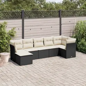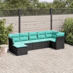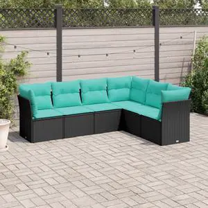 vidaXL Patio Sofa Set with Cushions Outdoor Furniture 7 Piece Black Poly Rattan