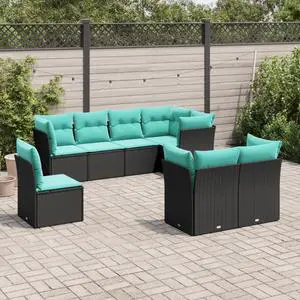 vidaXL Garden Sofa Set Black Poly Rattan 9 Piece Set Adjustable Feet