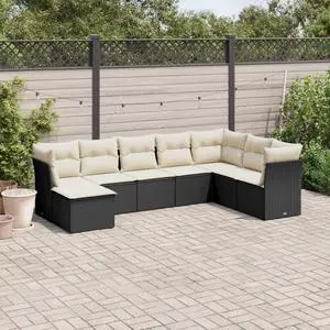 vidaXL Patio Sofa Set with Cushions Outdoor Furniture 8 Piece Black Poly Rattan