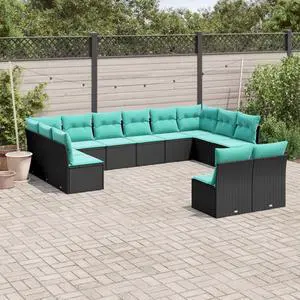 vidaXL Garden Sofa Set Black PE rattan, powder-coated steel, 100% polyester