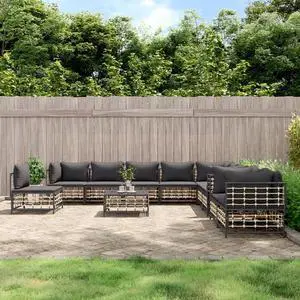 vidaXL Patio Furniture Set 11 Piece Sofa with Cushions Anthracite Poly Rattan