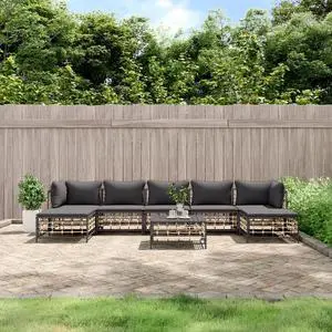 vidaXL Patio Furniture Set 8 Piece Sofa with Cushions Anthracite Poly Rattan