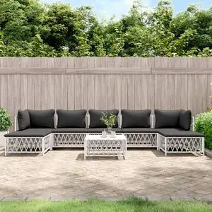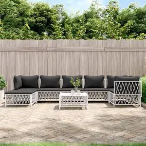 vidaXL Patio Furniture Set 8 Piece Sectional Sofa with Cushions White Steel