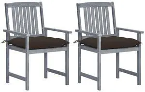 vidaXL Patio Chairs 2 Pcs Outdoor Chair with Cushions Gray Solid Acacia Wood