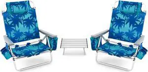 SlickBlue 2 Packs 5-Position Outdoor Folding Backpack Beach Table Chair Reclining Chair Set
