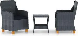 vidaXL Patio Furniture Set 3 Piece Sofa Chair with Table Poly Rattan Dark Gray