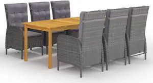 vidaXL Patio Dining Set Outdoor Table and Chair Set 7 Piece Poly Rattan Gray