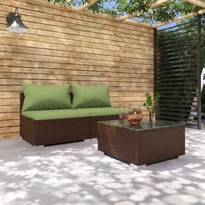 vidaXL Patio Lounge Set Table and Sofas Outdoor Garden Brown Poly Rattan 3 Piece