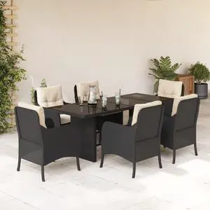 vidaXL Patio Dining Set with Cushions Garden Furniture 7 Piece Black Poly Rattan