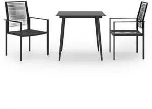 vidaXL Patio Dining Set with Cushions Garden Furniture 3 Piece Black Poly Rattan