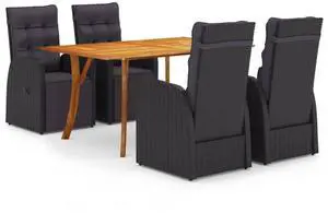 vidaXL Patio Dining Set 5 Piece Black Outdoor Garden Dinner Dinette Seating