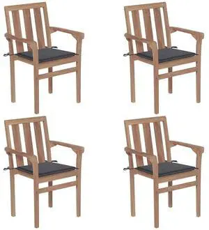 vidaxL 4x Solid Teak Wood Stackable Patio Chairs with Cushions Garden Seat