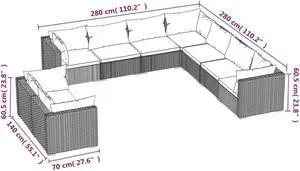 vidaXL Patio Lounge Set Outdoor Sectional Sofa Set 10 Piece Poly Rattan Brown