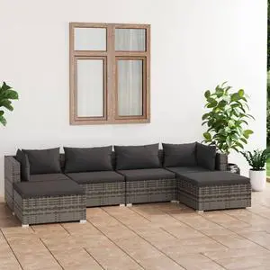 vidaXL Patio Lounge Set 6 Piece with Cushions Poly Rattan Gray Garden Seat