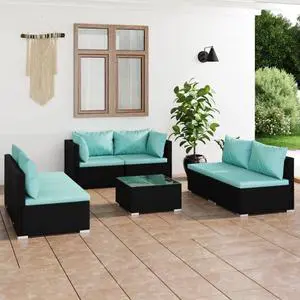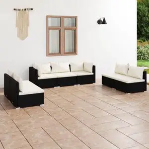 vidaXL Patio Lounge Set 6 Piece with Cushions Poly Rattan Black Garden Seat