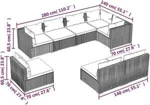 vidaXL Patio Lounge Set Outdoor Sectional Sofa 8 Piece Poly Rattan Dark Gray