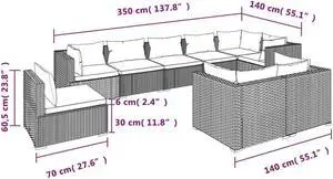 vidaXL Patio Lounge Set Outdoor Sectional Sofa 9 Piece Poly Rattan Dark Gray