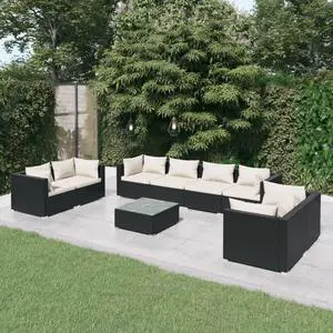 vidaXL Patio Lounge Set 9 Piece with Cushions Black Poly Rattan Garden Seat