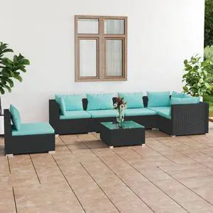 vidaXL Patio Lounge Set 7 Piece with Cushions Poly Rattan Black Furniture