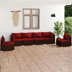vidaXL Patio Lounge Set Outdoor Sectional Sofa Set 7 Piece Poly Rattan Brown