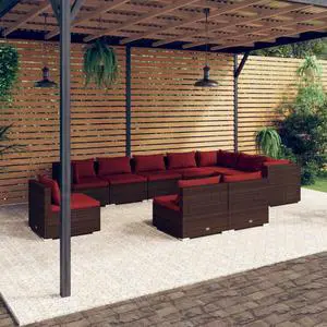 vidaXL Patio Lounge Set Outdoor Sectional Sofa Set 10 Piece Poly Rattan Brown
