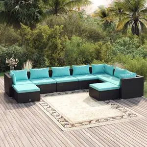 vidaXL Patio Lounge Set 10 Piece with Cushions Black Poly Rattan Garden Seat