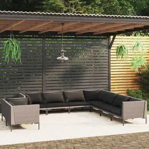vidaXL Patio Lounge Set 11 Piece with Cushions Black Poly Rattan Garden Seat